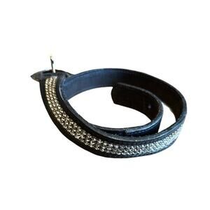 Vintage Italian Belt Rhinestone Black Leather Size XS Silver Buckle Boho Western