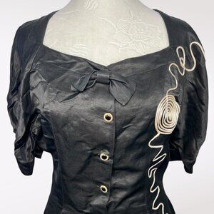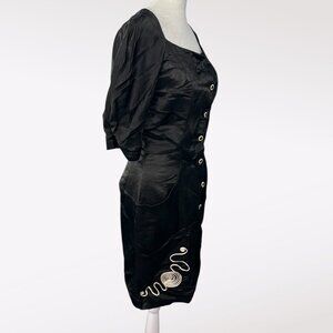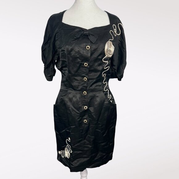 Vintage Italian Black Puff Sleeve Mini Dress Small