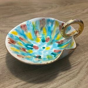 Gorgeous vintage Italian ceramic trinket dish. Signed and numbered. The colors are amazing! 5.5”.