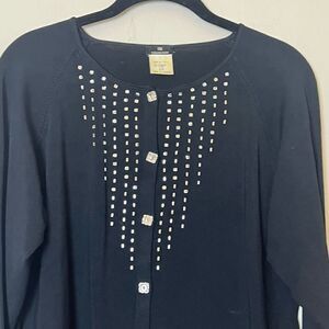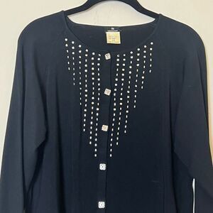 Vintage Italian D & D Collection Jeweled Cardigan Sweater, Black Size Large