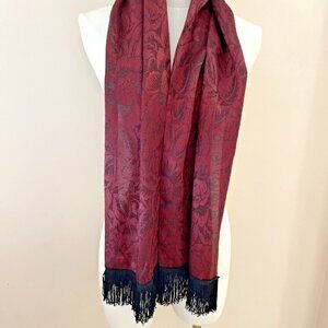 Vintage Italian Damask Scarf Burgundy Metallic Lame Fringe Opera Old Money 11X56
