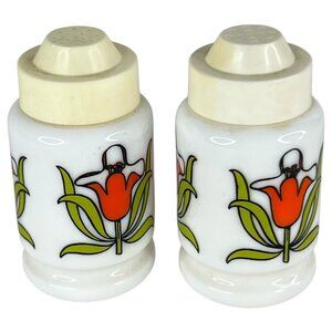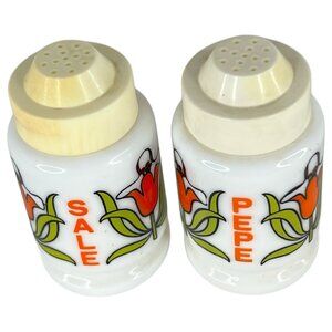 Vintage Italian Egizia Salt And Pepper Shaker Set Glass Tulip Pepe Sale Floral