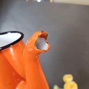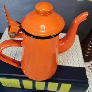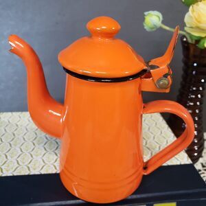 Vintage Italian Enamelware Bassano Orange Enamel Coffee Kettle Pot 5"