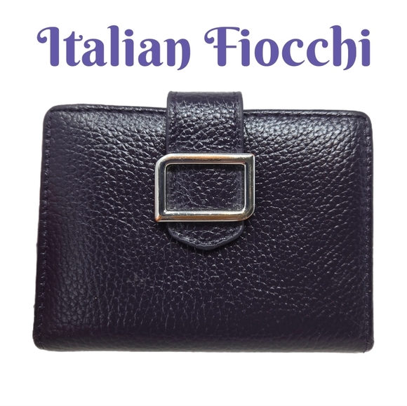 Vintage Italian Fiocchi Women Wallet Deep Purple Leather Fit In Hand Snap Close
