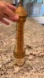 This elegant pepper mill accent features a dome-shaped top in a golden copper finish, beautifully contrasting with its warm honey-toned wooden body. The classic design, with its turned details and natural wood grain, adds a vintage charm to any decor setting.