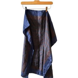 Vintage Italian Large Silk Scarf Navy Blue Paisley Print