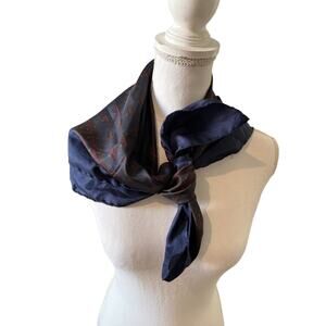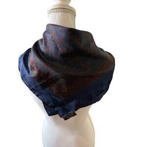 Vintage Italian Large Silk Scarf Navy Blue Paisley Print. Good preowned condition, 100% silk