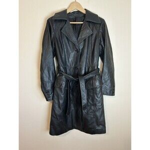 Vintage Italian Leather Jacket Womens M Single Breasted Blazer Car Coat Duster