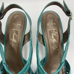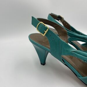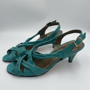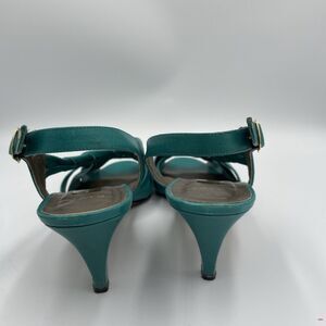 Vintage Italian Leather Sandals Turquoise Teal Womens 8.5 Pump Heel Strappy