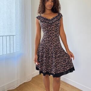 Vintage Italian Liu Jo Black Ditsy Floral Dress with Ruffle Collar (S)