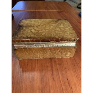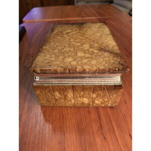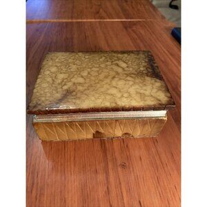 Vintage Italian Marble Tortoiseshell Look Hinged Box Silver-Tone Trim Jewelry Tr