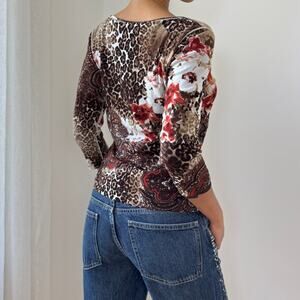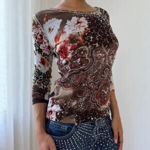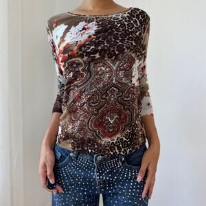 Vintage Italian Mesh Leopard & Paisley Print Top (S/M)