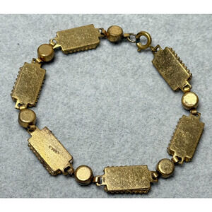 Vintage Italian Micro Mosaic 7.5" Rectangle Link Bracelet Gold Tone Blue Red Dot