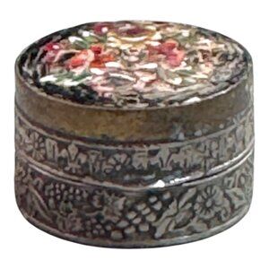 Vintage Italian Micro Mosaic Floral Pill Box Floral Inlaid Silver Plated Trinket