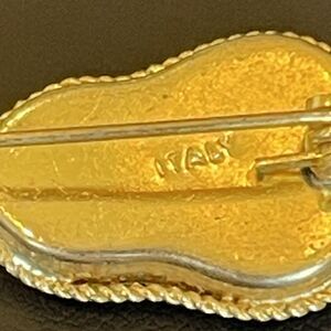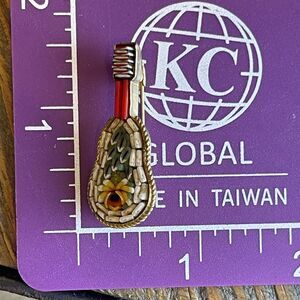 Vintage micro mosaic mandolin guitar pin brooch from Italy. Signed Italy on back of brooch. Gold tone. Please see photos for details size and condition
