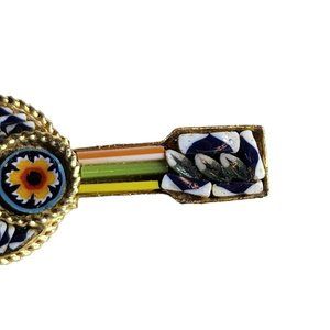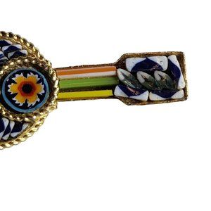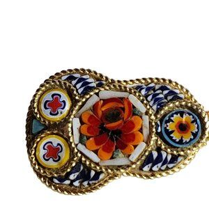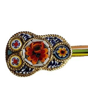 Vintage Italian Micro Mosaic Millefiori Glass Guitar Brooch Pin Flower