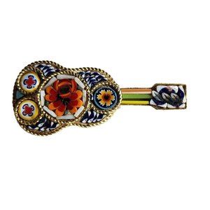 Vintage Italian Micro Mosaic Millefiori Glass Guitar Brooch Pin