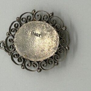 Vintage Italian Micro Mosaic Oval Pendant With Filigree Detailing Floral Design