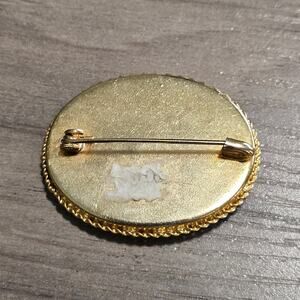 Vintage Italian Micromosaic Flower Brooch Navy Blue Oval with Gold Surround