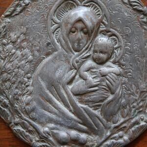 Vintage Italian Mixed-Metal Medallion of the Madonna and Child