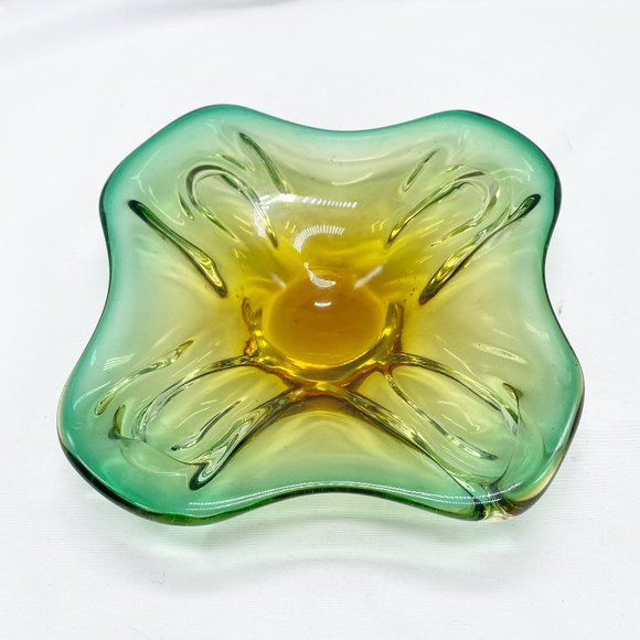 Vintage Italian Murano Art Glass Green Amber Ombre Candy Dish Bowl