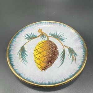 Vintage Italian Pottery 5inch Round Dish Plate With Pine Tree Acorn Italy VTG