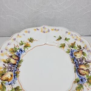 Vintage Italian Serving Platter Scallop Raised 13" White Floral Serving Plate