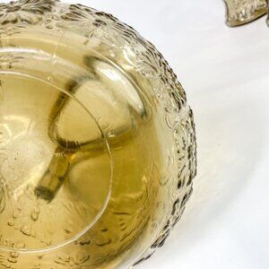 Vintage Italian Smoky Amber Glass Embossed Floral Design Pitcher 6 Tumblers Set