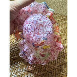 Vintage Italian Splatter Millefiori Ruffled Glass Basket Murano Polished Base