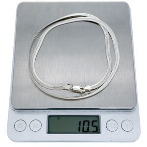 This elegant vintage Italian herringbone chain features a sleek and smooth design, perfect for adding a refined touch to any outfit. The high-polish finish enhances its classic appeal, making it ideal for both everyday wear and special occasions. Crafted in Italy, this sterling silver necklace is a timeless addition to any jewelry collection.