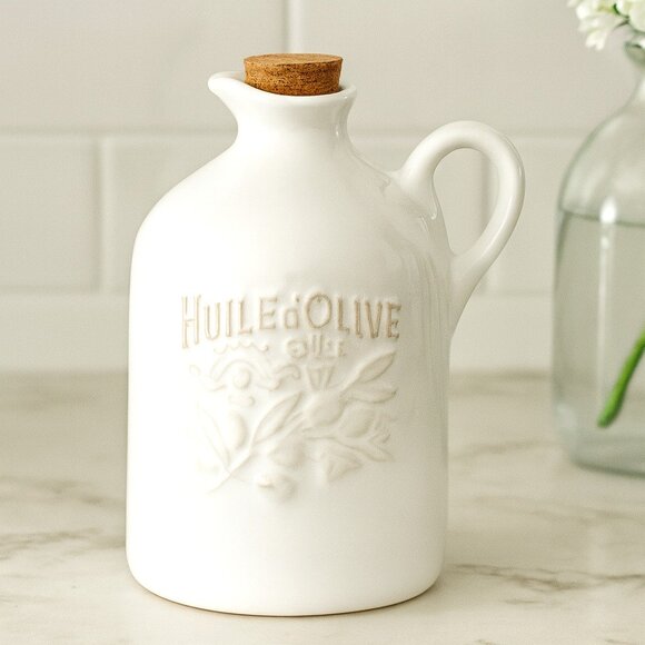 Vintage Italian Style Olive Oil Cruet Jug White Porcelain With Cork Stopper , Farmhouse Oil Dispenser, Cottagecore Style Olive Oil Cruet, Farmhouse Kitchen, Italian Style Oil Dispenser