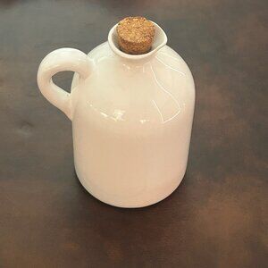 Vintage Italian Style Olive Oil Cruet Jug White Porcelain With Cork Stopper
