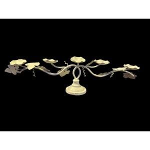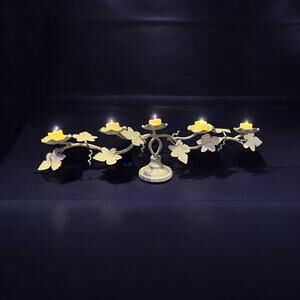 Vintage Italian Tole Metal Candelabra-Chippy Paint-Floral Vines-5 Tealight-White
