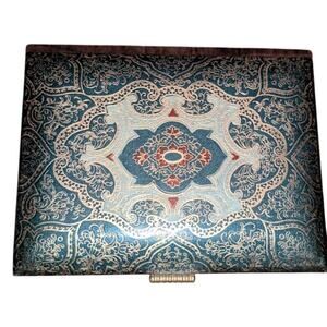 Vintage Italian Tooled Leather and Wood Hinged Jewelry Trinket Box 6.5 X 5 inch