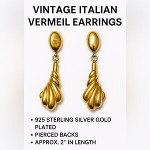 Vintage Italian Vermeil Earrings – 925 Sterling Silver Gold Plated Drop Design