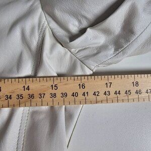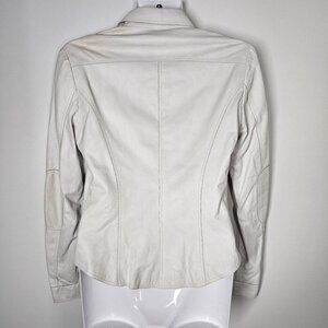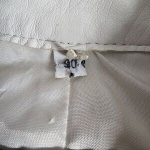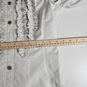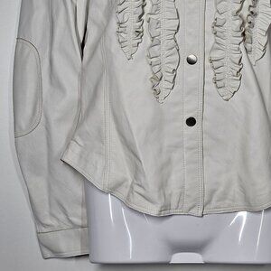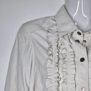 Vintage Italian White Leather Button-Up Jacket with Ruffles by Artico Womens XS