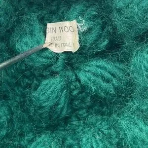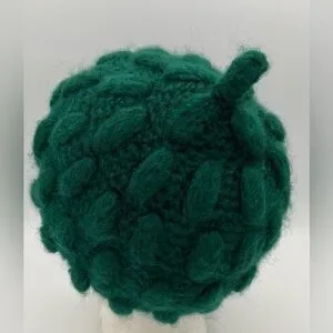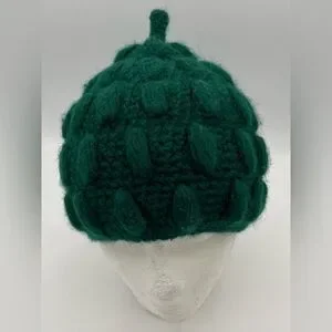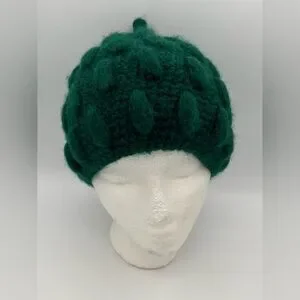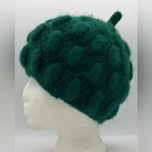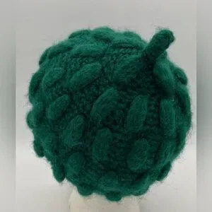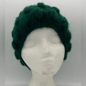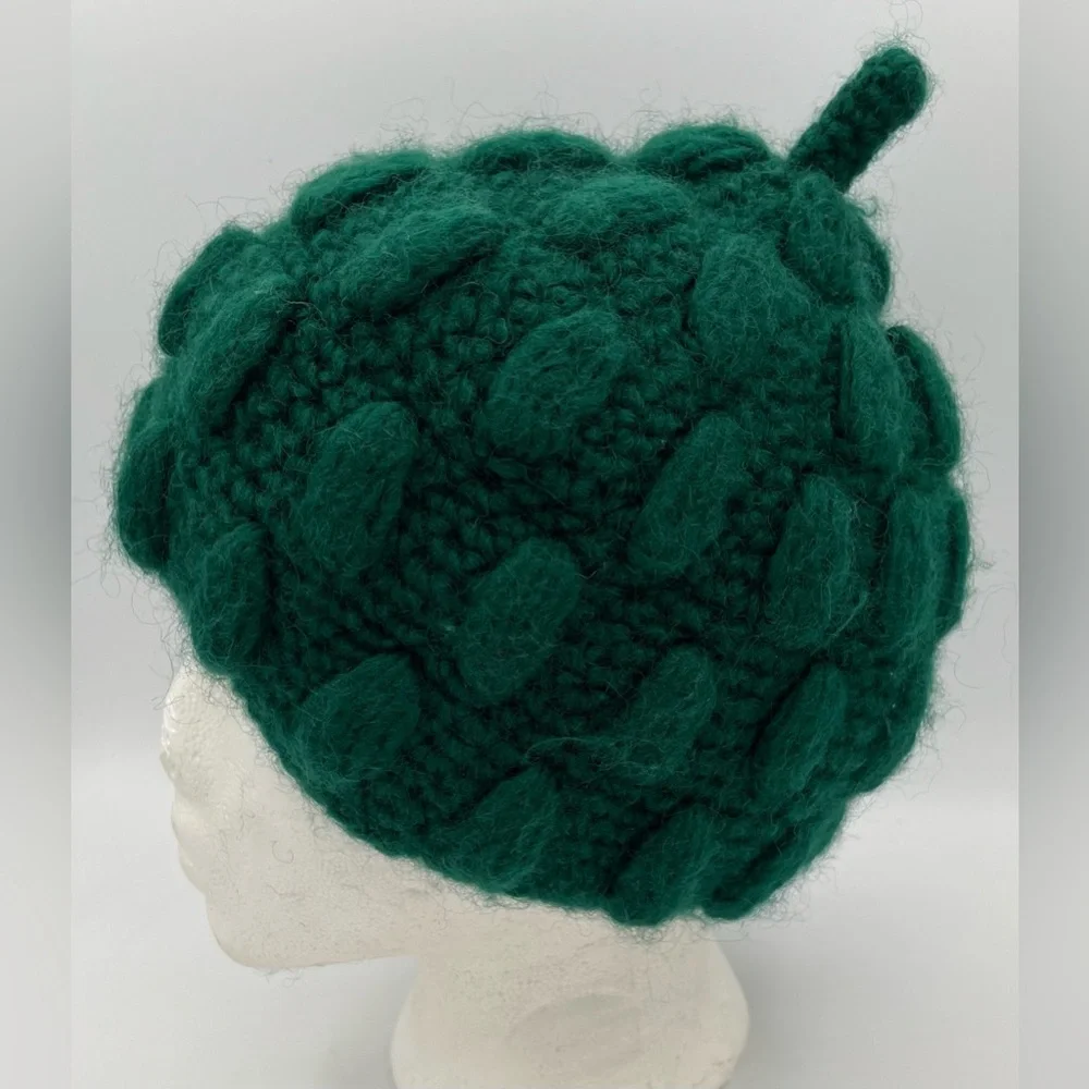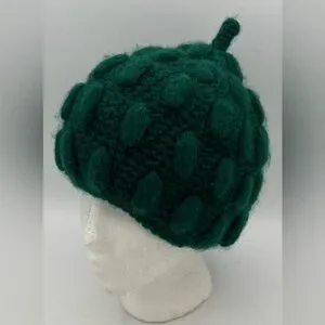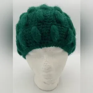 Vintage Italian Wool Green Chunky Knit Winter Fall Beanie Hat Cottagecore Knobby