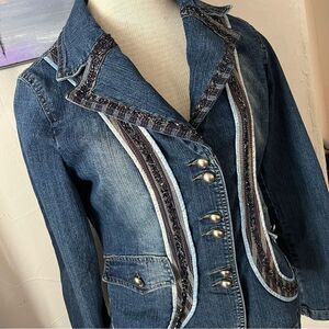 Vintage Italian designer Paola Santini denim jean jacket beaded detail size 6