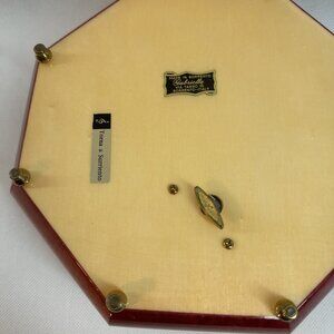 Vintage Italian/Sorrento Octagonal Musical Jewelry Box. It features a lacquered inlay wood finish; 8 brass feet & lock with key; made in Sorrento, Italy. Measures approximately 9"x9"x3". The song played is "Torna a Surriento", which means "Return to the South". A Neapolitan song composed in 1894. Listen in the video; we removed the velvet shelf so you could see the swiss musical movement. Box locks with the key included. Has a tiny scratch and a rubbed corner edge, otherwise in very good condition. From a Smoke-Free Pet-Free Home.