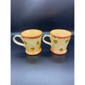 Vintage Italica ARS Pottery Set of 2 Mugs Cups Hand Painted Rooster Italy