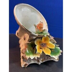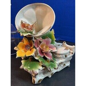 Vintage Italy Capodimonte Floral Phonograph w/Gold accents Large 8" Tall
