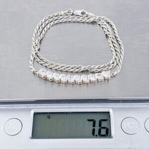 This vintage Italian sterling necklace features a sleek twisted chain with a shimmering bar of prong-set cubic zirconia for a refined sparkle. The minimalist silhouette offers timeless elegance, perfect for both casual chic looks and special occasions. A lovely heirloom-quality piece to wear solo or layer effortlessly.