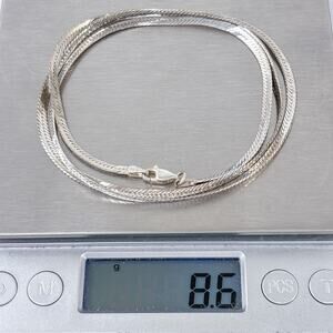 Vintage Italy SU Sterling Silver 925 Flat Herringbone Chain Necklace 23.5"
