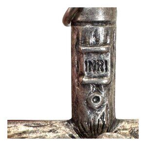 Vintage Italy Silver Inri Crucifix Pendant Rustic Stick Religious Charm Necklace