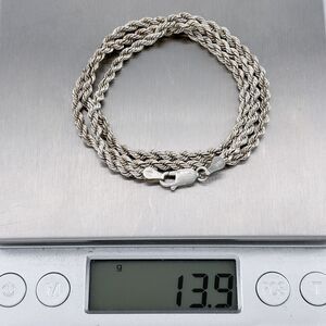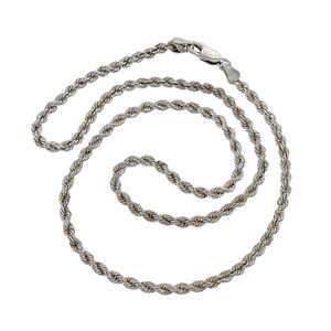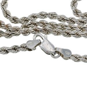 This vintage twisted rope chain necklace from Italy by UTC features a bold 3.2mm design in sterling silver. The intricate twist adds texture and elegance, making it perfect for any occasion. Its 18" length offers versatility, whether worn alone or paired with a pendant.