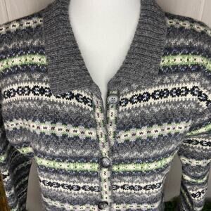 Vintage Item & Co 100% Wool Cardigan Green and Grey (M)