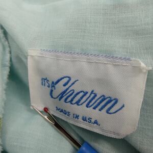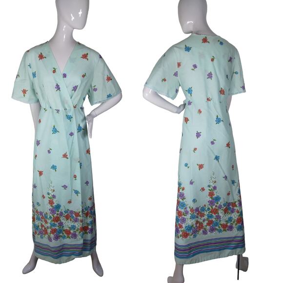 Vintage Its A Charm Long Robe Size Large Pastel Blue Floral Print