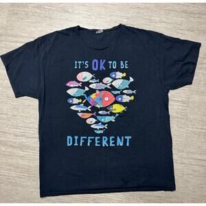 Vintage It's OK To be Different Funky Fish Shirt Autism Awareness Distressed L