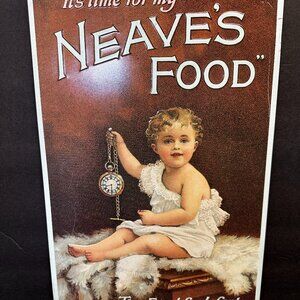 Vintage "It's Time For My Neaves's Food For Infants"Reproduction Tin Sign/EUC