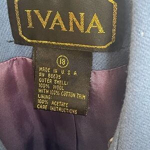 Vintage Ivana Wool Blazer Blue Velvet Trim Lace Cuff Size 18 Made in USA